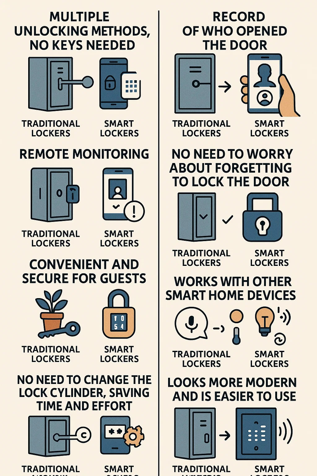 Vergeleken met traditionele kluisjes, slimme kluisjes bieden een aantal tastbare voordelen: