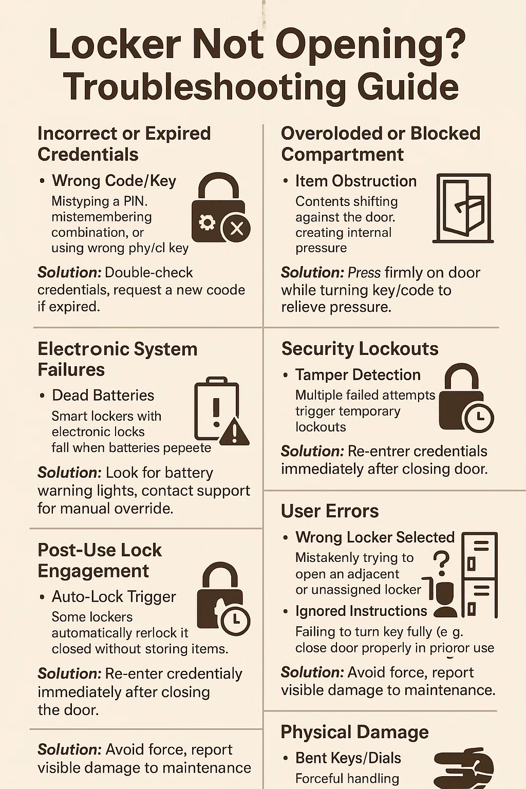 Hier volgt een overzicht van veelvoorkomende redenen waarom a kluisje wordt mogelijk niet geopend, samen met praktische stappen voor probleemoplossing: